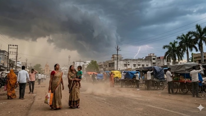 50–70 किमी/घंटा की रफ्तार से तेज आंधी